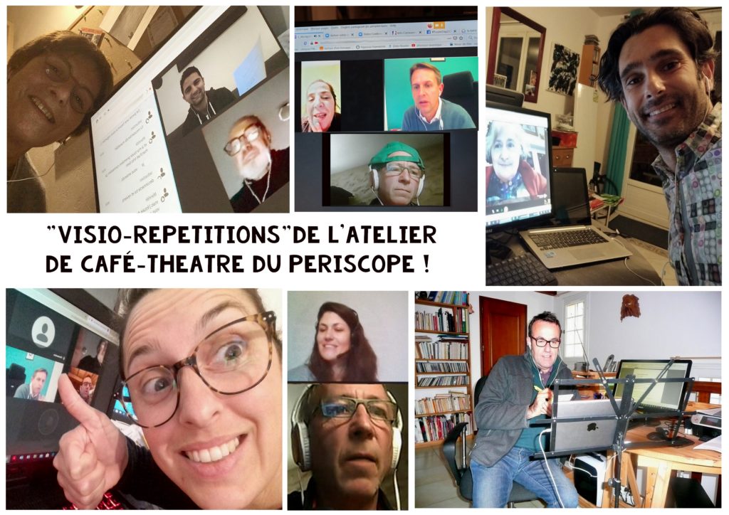 L’atelier Café Théâtre, mené par Pierre Gorses, a vécu sa première « visio répétition » lundi 23 mars de 18h à 20h. Presque tous les élèves étaient présents, casque sur la tête ou écouteurs aux oreilles, depuis sa chambre ou son bureau, muni de son texte.
